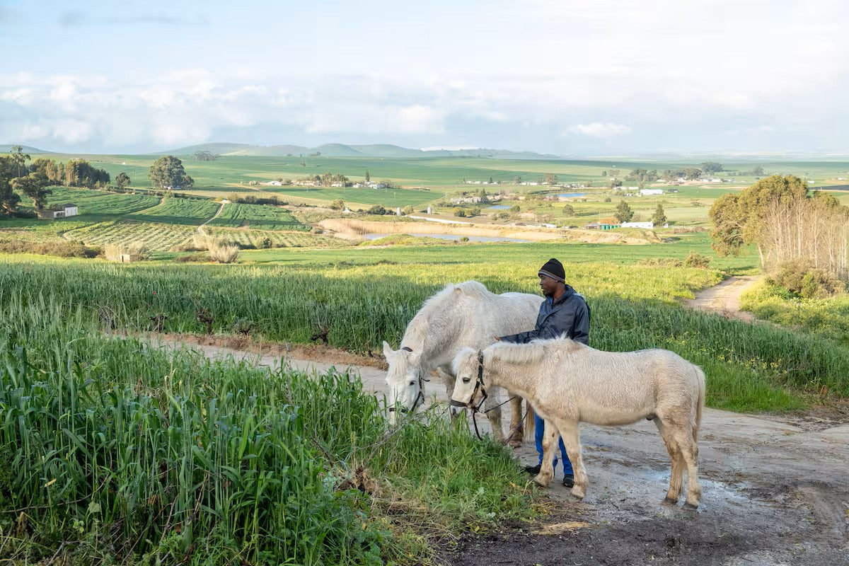 Spend your days exploring the working wine farm, swimming in dams, or relaxing with friendly farm animals including dogs, horses, and peacocks. This authentic farm retreat offers a perfect blend of nature, comfort, and charm.