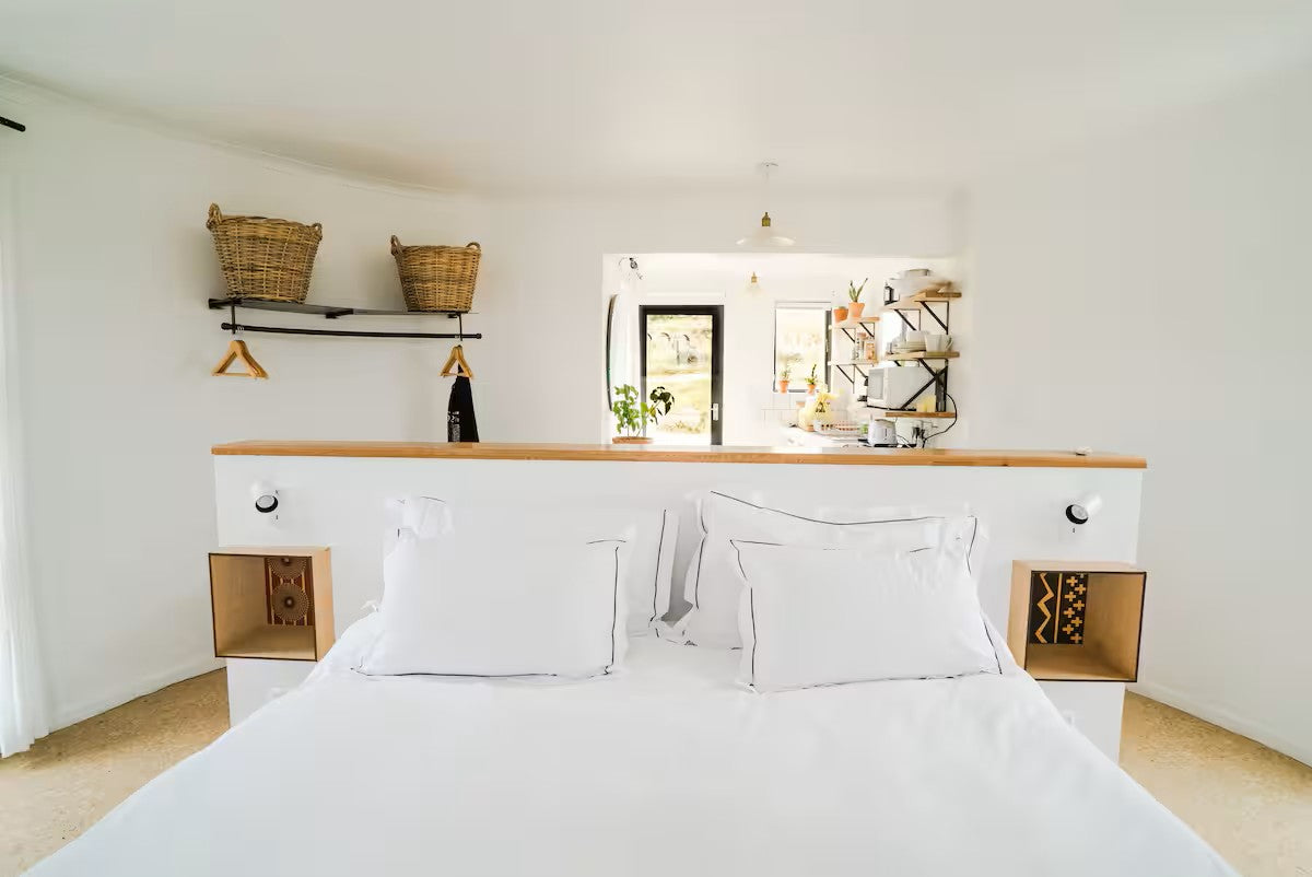 Inside, you’ll find a cozy open-plan bedroom with a king-size bed, air conditioning, and a compact kitchenette stocked with fresh coffee, teas, and homemade rusks to start your day right. A small en-suite with natural, farm-made toiletries adds a touch of luxury.